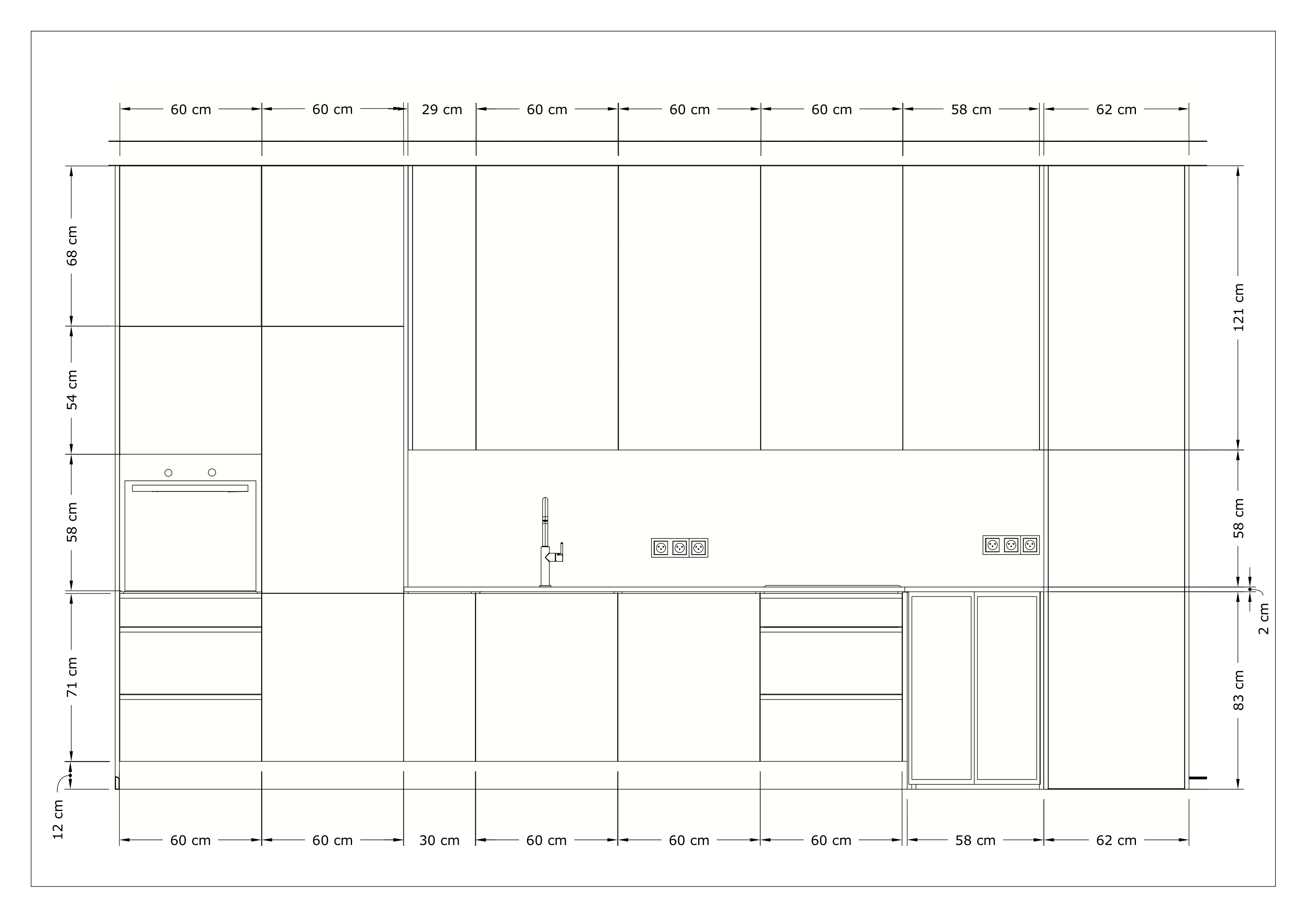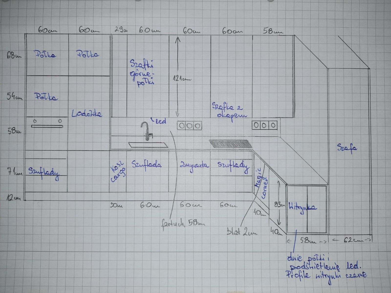 1. Odręczny lub wykonany w programie komputerowym szkic zabudowy z wymiarami